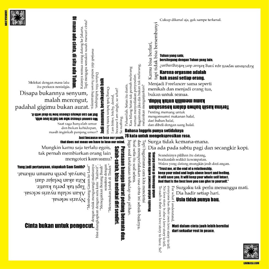 Untuk tujuan itulah selendang ini hadir. Berisi kata-kata yang pernah ada di linimasa, selendang ini akan memancing orang lain yang melihatnya untuk bertanya.